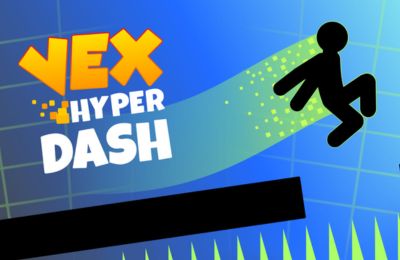 In Vex Hyper Dash, the stickman character will automatically run forward, and your task is to control the jumps and dashes to avoid obstacles. While playing, you will: